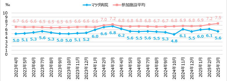 分母:調査期間初日(0時時点)の入院患者数+調査期間に新たに入院した患者数