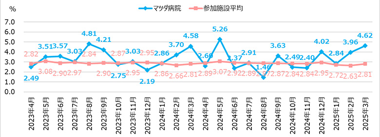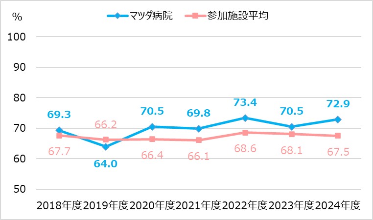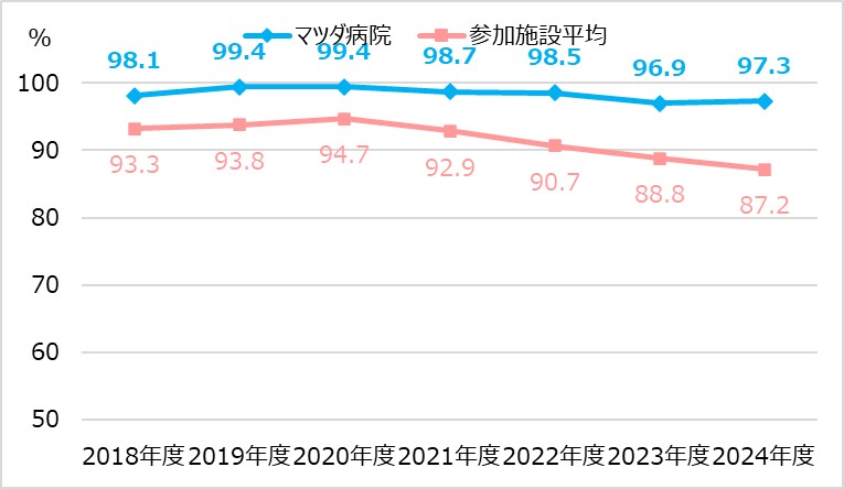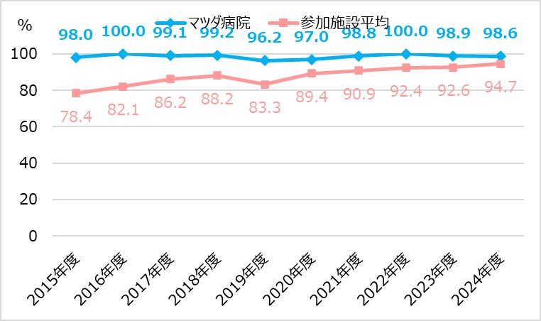 当院では測定している様々なQIをホームページに公表し、最適な医療を提供できる病院となるため、改善を図り医療の質の向上に努めていきたいと考えております。