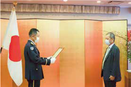災害時の救急搬送先病院としての対応、隊員の健康診断や救急時の受入等が評価されたものです。
