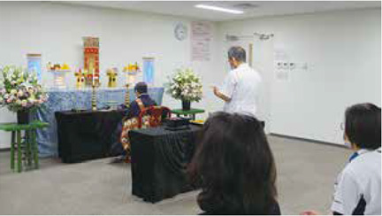 12月10日(金) 慰霊法要を執り行いました。この法要は、1年間に当院でお亡くなりになられた方々の慰霊として毎年12月におこなっております。院長をはじめ医師、看護師、薬剤師、事務など各部門の代表が参列し、執り行いました。