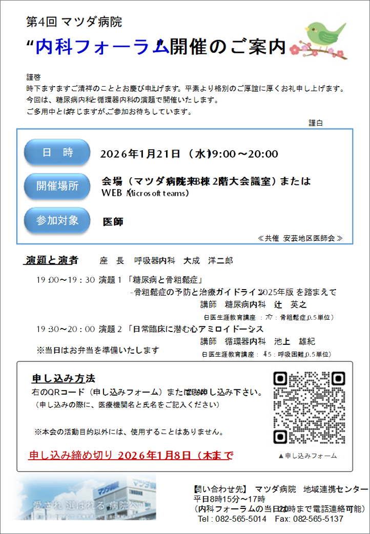 第1回 マツダ病院 内科フォーラム2024年1月17日(水)19:00~20:00